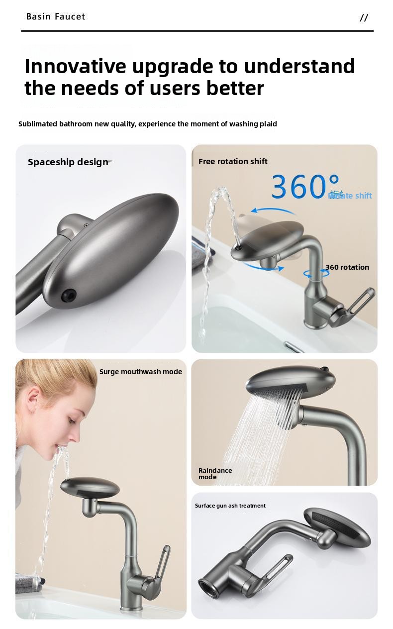 This 360° swivel stainless steel faucet has been an outstanding addition to my bathroom. the high-quality stainless steel construction gives it a sleek and modern appearance that fits perfectly with my bathroom decor. the 360° swivel feature is not only unique but also highly practical, allowing for easy cleaning and filling of large containers. installation was straightforward and the faucet functions beautifully. the water flow is strong and steady, and the handle is smooth and responsive. the faucet also resists water spots and fingerprints, which keeps it looking clean and shiny. it has significantly improved the usability of my bathroom sink and added a touch of contemporary style. i am extremely pleased with this purchase and have already recommended it to friends and family. if you’re looking for a stylish, durable, and highly functional faucet, this one is an excellent choice.