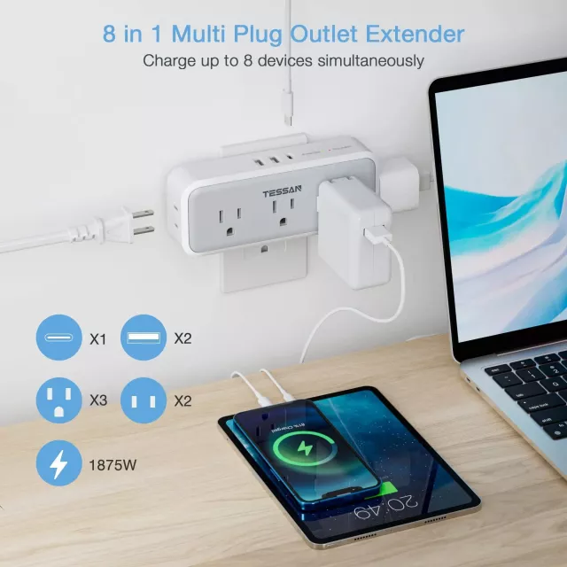 8-in-1 Multi-Plug Outlet Extender with USB Ports & Surge Protection